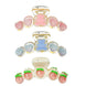 Our hair claw clips are made from premium plastic, resin, soft clay and metal spring. Mixed with different styles like soft pink heart sweets and cute pink bear, Blue heart sweets and blue bear and peach design. Very comfortable and rust-less, flexible and durable.