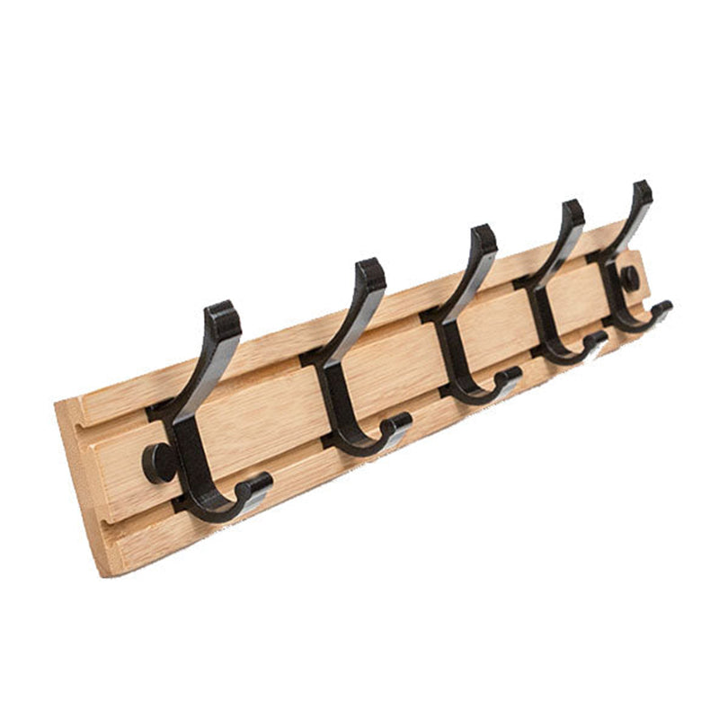 5 Hooks Hanger Row Hook Wall Coat Hanger Wooden Peg Farmhouse Key Holder Ba... S