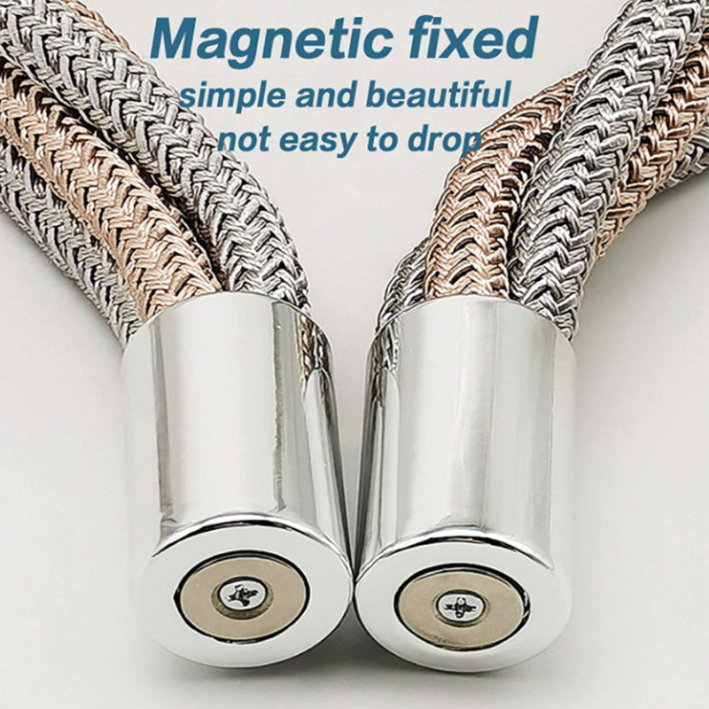 PREMIUM MATERIAL: Magnetic curtain tie backs use an upgraded version of nickel-plated magnets, which are strong, smooth, and rust-resistant, and will not fall after fixeding the curtain. The brightly colored decorative braided rope is hand-woven with premium polyester cotton materials. The silk thread has high strength, strong toughness, is not easy to fall off,wear or pilling, adding a modern beauty to your windows