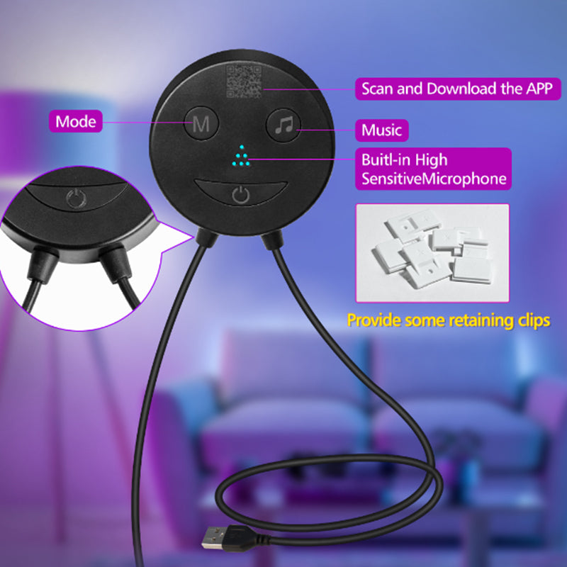 Smart TV led light bar can be controlled by mobile phone APP, you can easily adjust the brightness, change the color and enter the music mode. Adjust the brightness or change the color. By scanning the barcode on the strip and downloading the APP, you can enjoy more than 16 million colors and multiple scene modes.