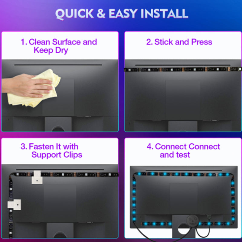 The USB LED strip has adhesive on the back, which can be easily installed on the back of a TV or PC. Cuttable design, convenient for you to cut off the excess length at any time