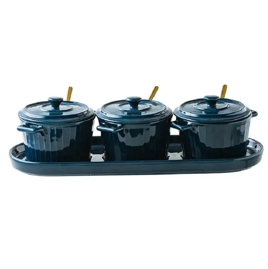 Ceramic condiment pot is made of ceramic, easy to clean. Multi-purpose - Convenient and space-saving. Multi-purpose ceramic jar combinations store salt, sugar and pepper in one set. Keep the kitchen clean and efficient.Regular price $38.99