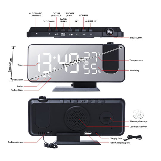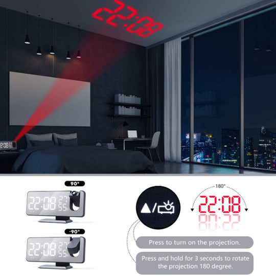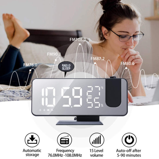 Projection Digital Alarm Clock Radio Alarm Clock on Ceiling USB Charger Port