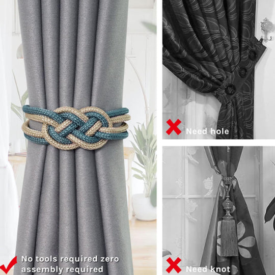 2 Pcs Magnetic Curtain Attraction Appliance Drape Tie Backs Weave Rope Knot B