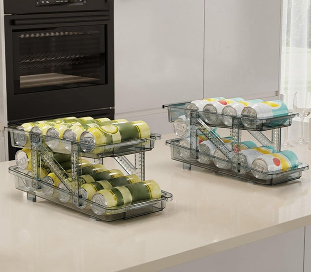 2PC Infinite Telescopic Beverage Storage Box, Two-Tier Automatic Rolling Soda Can Storage Organizer