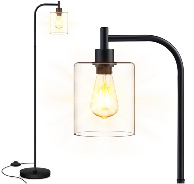 Floor Lamp, Standing Lamp with Glass Lampshade, 6W LED Bulb Included Black