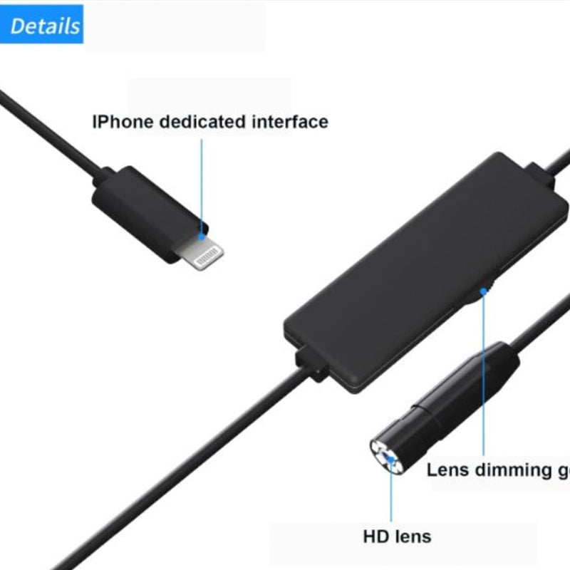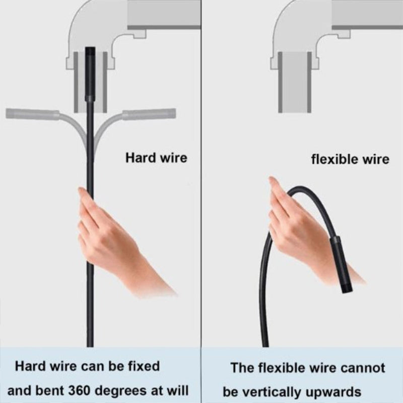 Borescope camera with light comes with 5.5 mm lens and 2 m rigid cable, is compact,easy to bend and keep in shape. It is useful in narrow, hard-to-reach areas, such as air conditioners, ventilation shafts, motor valves, toilets, etc.