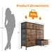 The wide chest of drawers measures 39.4" L x 11.8" W x 38.9" H. Drawer Size: 12.1" L x 11" W x 8.7" H x 6 and 18.4" L x 11" W x 8.7" H x 3 . The bedroom dresser can also be TV stand for small-size TV