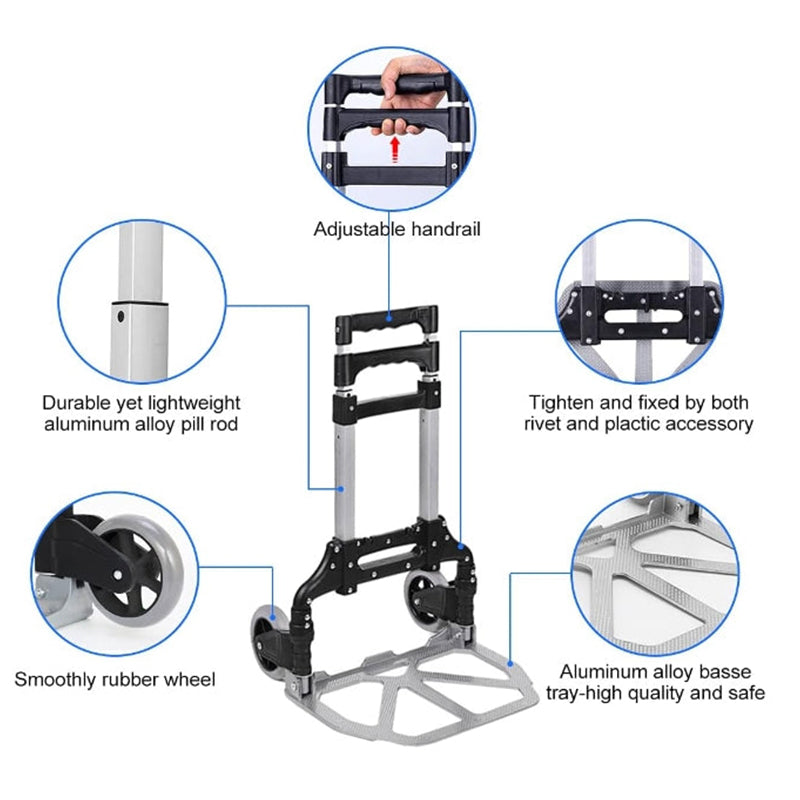 Sturdy & Durable -Lightweight industrial-grade trolley with reinforced aluminum alloy frame helps moving heavy objects. Save your back and carry things around with the right tool for the job. Perfect for use at home, office, business, travel or shopping. Let our rugged dolly do the heavy lifting.