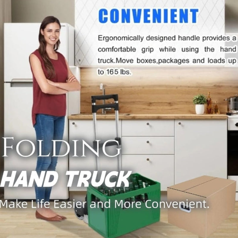 3-Level Telescopic Handle- Telescoping handle extended to 39.3 inches for convenient load handling. Large wide base and rubber wheels easily transports up to 165 lbs of cargo.
