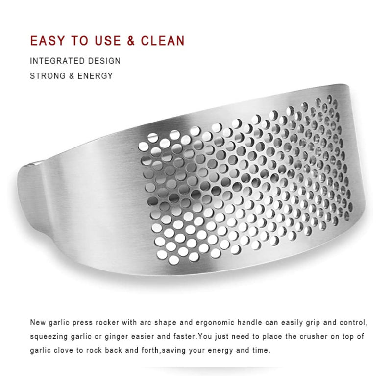 Premium Material: New garlic press is very durable and made of premium 100% full stainless steel. Sturdy, durable, comfortable, ergonomic.