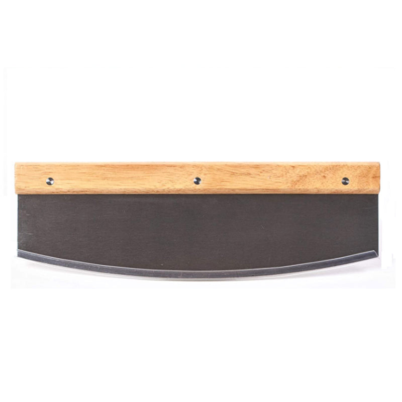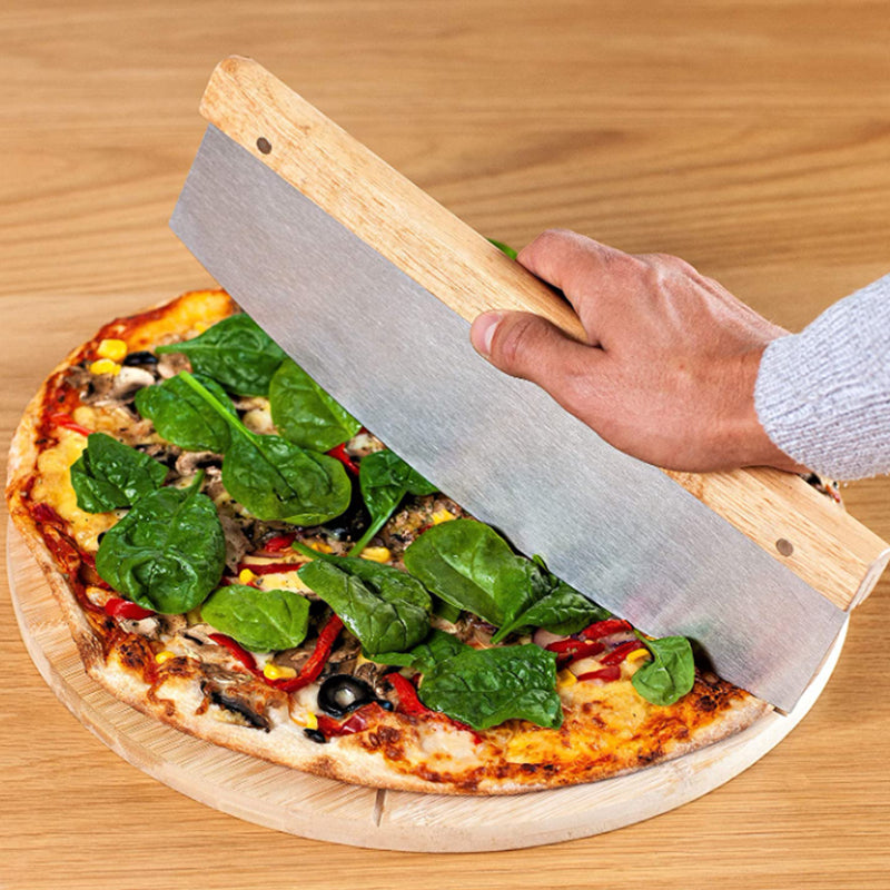 The pizza cutting knife has a heavy-duty steel blade with an ergonomic wooden handle that ensures a comfortable grip.