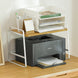 RACK SIZE: 53cm X 30cm X35cm. It can store one toaster oven underneath.