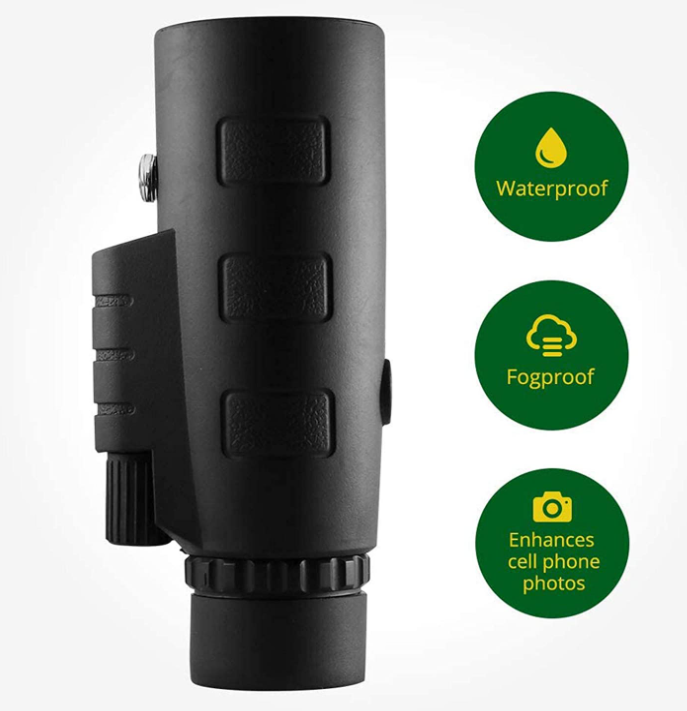 【12X50 HD High Power Monocular Telescope】Zoopod monocular telescope provides 12x magnification with 50mm objective diameter wide lens, and a wide field of view (211ft/1000yards), letting you have the best view in your outdoor adventures. It’s a "MUST HAVE MONOCULAR TELESCOPE" for adults and kids, perfect for bird watching, hunting, hiking, camping, traveling, wildlife, scenery, etc.