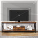 Stylish and modern, this black tv stand features a unique embossed wood grain. This TV console for 55 inch TV can fit in well with most style of home decors. Equipped with adjustable feet, it is not easy to scratch the floor and is suitable for uneven ground.