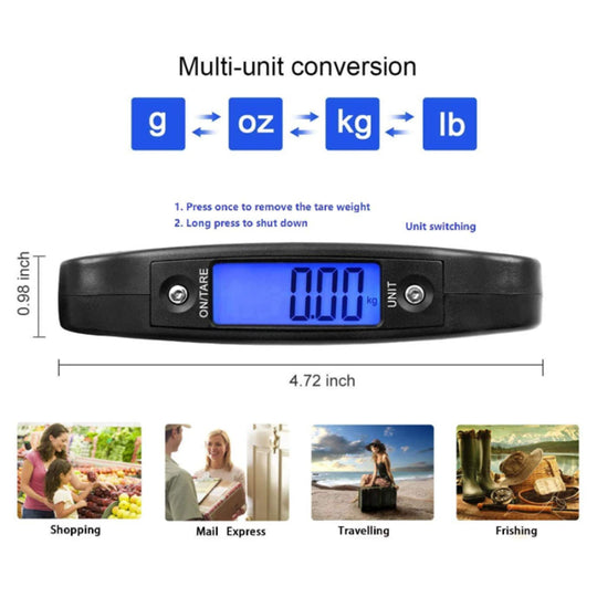 Portable Handheld Luggage Electronic Scale 50 kg Blue Backlight for fishing