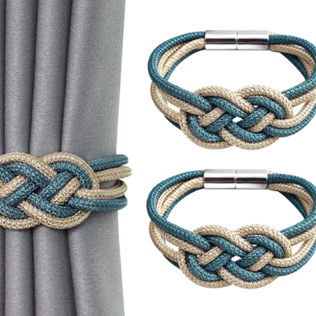2 Pcs Magnetic Curtain Attraction Appliance Drape Tie Backs Weave Rope Knot B