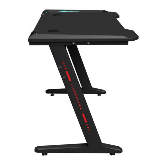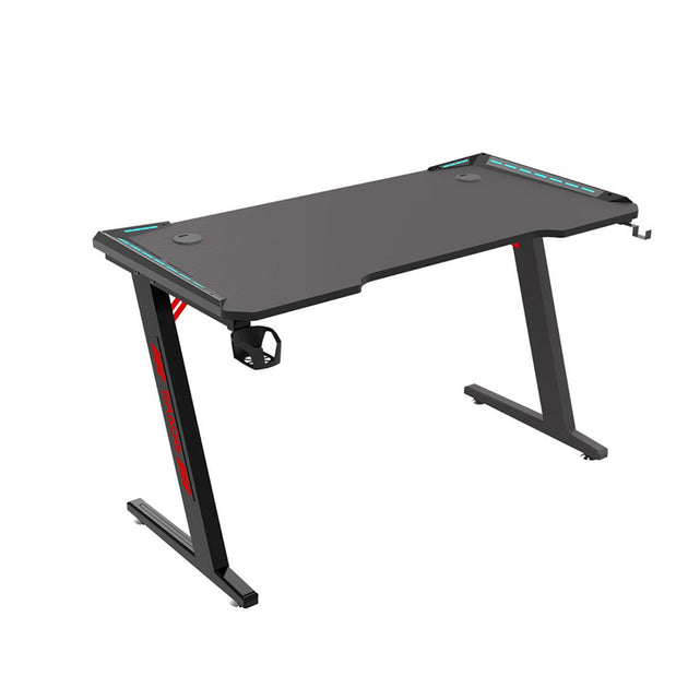 Gaming Desk Z shape with LED RGB Lights Headphone Hook and Cup Holder