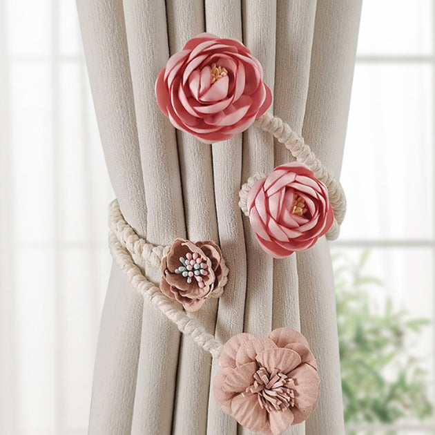 Creative Window Drape Twist Tie Backs Flower Curtain Ties for Drapes Flower Pink