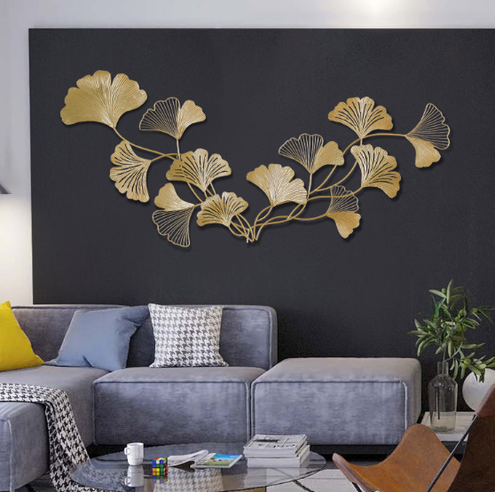 Metal Wall Decoration- Art Wall Hanging Gold Ginkgo Leaf Wall Sculpture Ornament