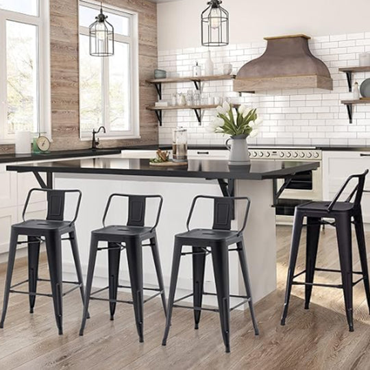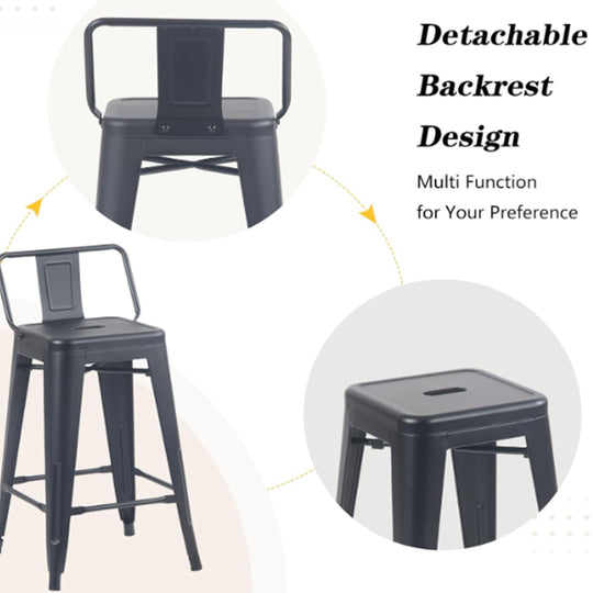 Metal Bar Stools Stackable Industrial Indoor Bar Chairs Black with Low Back
