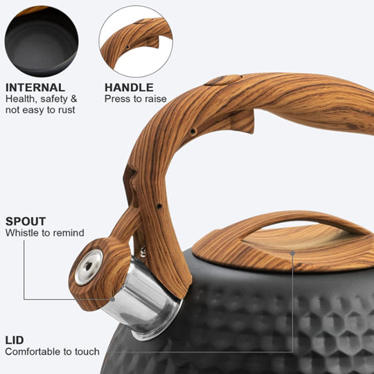 Whistling 304 Stainless Steel Diamond Pattern Tea Kettle with Wood Grain Handle