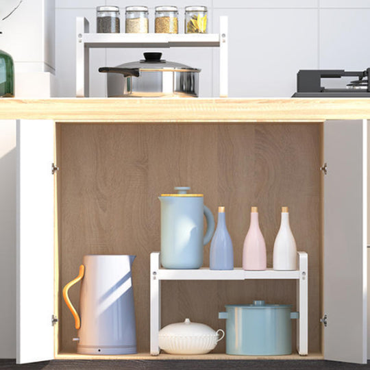 Expandable Cabinet Shelf Stackable Kitchen Counter Shelf Metal Sink Organizer 2