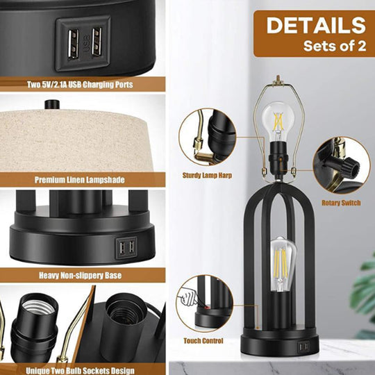 3-Way Dimmable Bedroom Living Room Lamp with USB Charging Port and TPC Charging