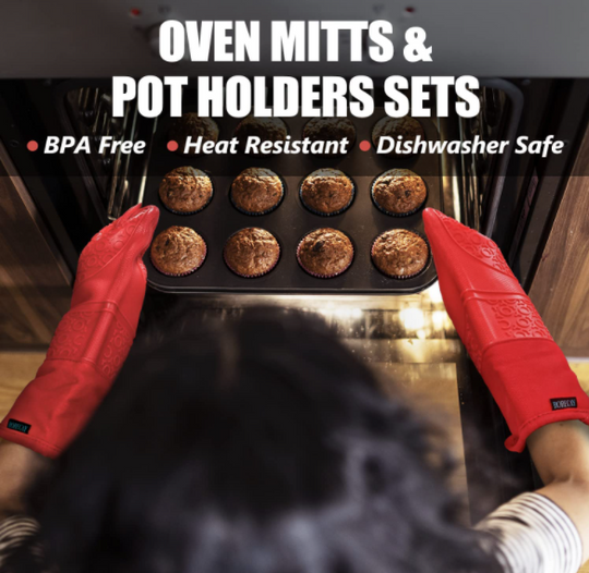 Extra Long Oven Mitts and Pot Holders Sets