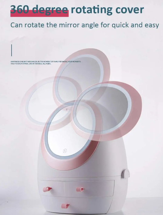 USB Rechargeable Makeup Organizer Cosmetic Storage Box Jewelry Drawer Mirror LED