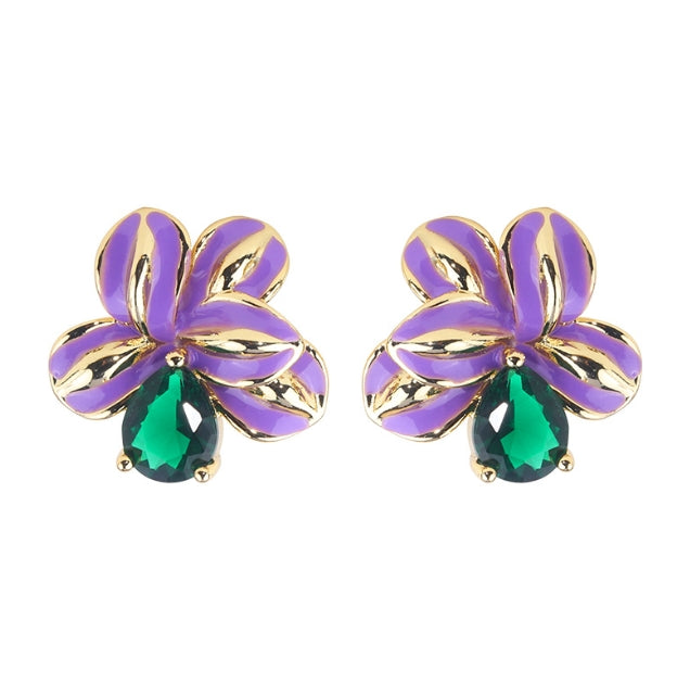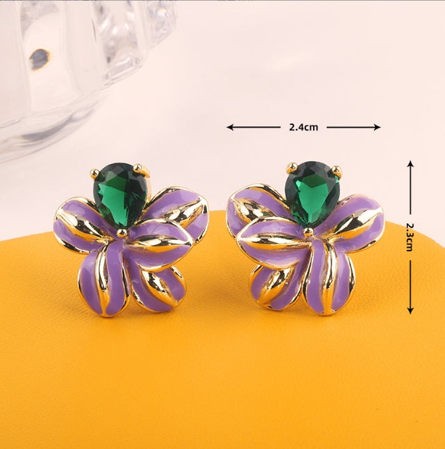 It is Crystal Glass gold-plated brass Enamel dripping earrings with 925 sterling silver earrings pins