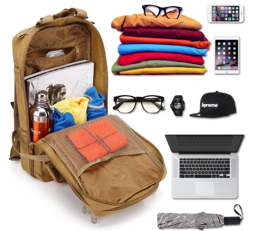 Military Tactical backpack size approx.: 45cm*25CM*23cm (H*L*W) Capacity: 35L; Military backpack is made of high density fabric--durable and water-resistant Our Military Backpack has 2 Main large compartments, 2 Small compartments in front, and 1 back compartment....Regular price $29.99