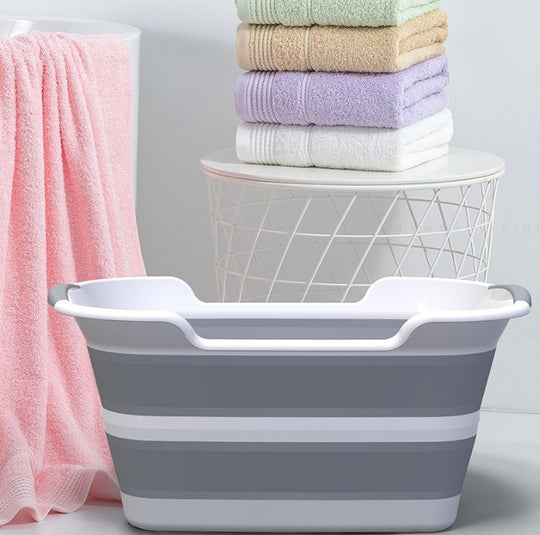 Collapsible Plastic Laundry Basket, Foldable Pop Up Storage Container-Portable Washing Basin