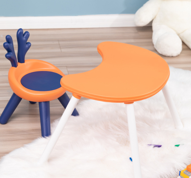 Kid Table Set Baby Toy Table Plastic Learning Desk with Rabbit Ear Chair O
