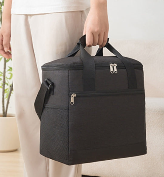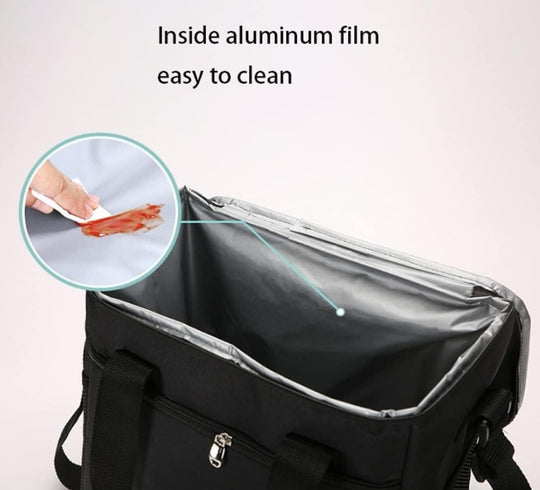 Large Capacity Lunch Bag Tote Insulated Lunch Bag Picnic Food Lunch Box Storage Ice Cooler Black