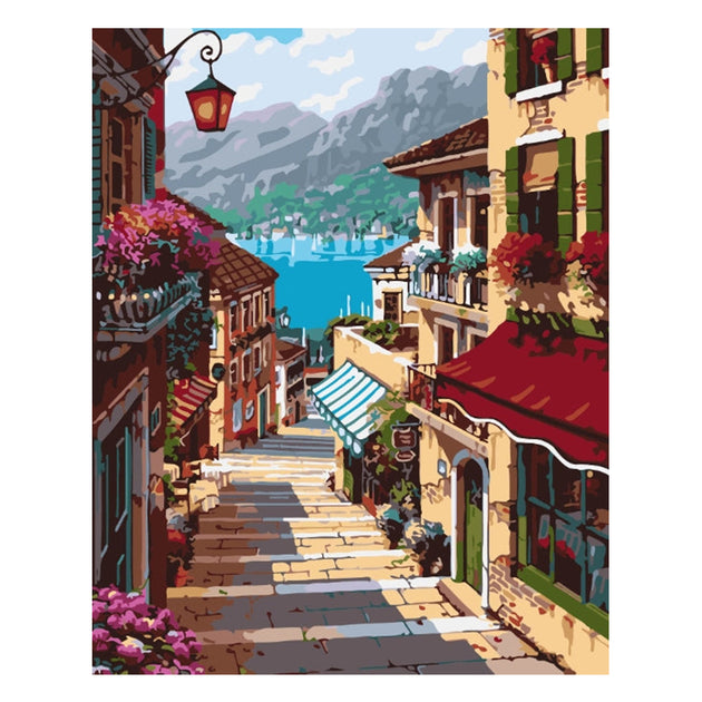 Adult Paint by Number Kit Plus on Canvas 40x50 cm (with wooden frame) Italian Village