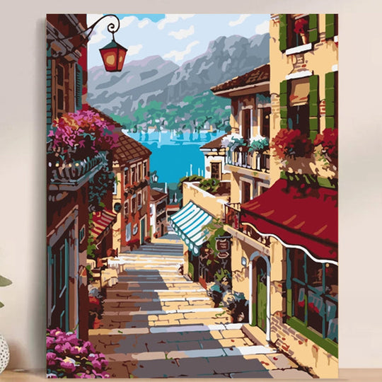 Adult Paint by Number Kit Plus on Canvas 40x50 cm (with wooden frame) Italian Village
