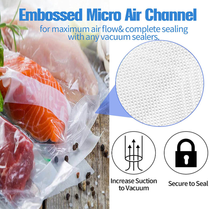 Heavy Duty and Puncture Prevention : Vacuum sealer bags are constructed of food-grade, 7-layer durable, pliable material that forms a tight barrier around the food, preventing air, moisture, freezer burn, frozen, and dehydration. Designed with 4 mil front panel, 4 mil embossed back panel for maximum protection and freshness, locking in nutritional, extending storage time 4-6 times. Apply to the temperature of -20 ℃-110 ℃