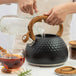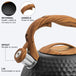 Stainless steel constructed water kettle, durable and rust-resistant; capsulated base heats up quickly and retains heat well, provides even heat distribution.