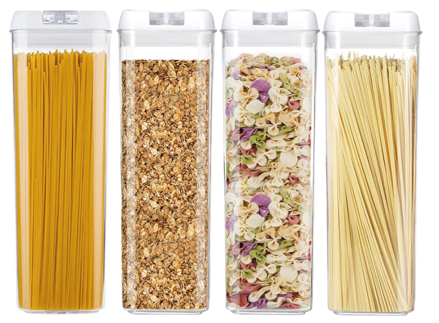 Easy to Store: These plastic canisters are versatile enough to work well on your kitchen countertop, cabinets, and pantry. Clear containers make it convenient to see what’s inside, you can easily get what you want without opening every container. Perfect for storing spaghetti, cereal, flour, sugar, pasta, nuts, rice, grain, beans, snacks and other dry food.