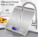Convenient Use: Digital kitchen scales via the integrated LCD display, auto shut off after 2 minutes of inactivity, low battery and overload indicators, Smooth stainless steel platform and fingerprint proof technology for easy cleaning and maintenance
