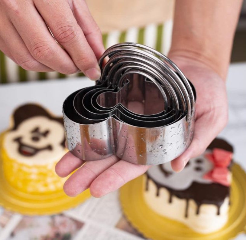 When we need to cook different sizes of mini cakes, the mouse cookie cutter plays a crucial role. It is composed of 5 different sizes of cookie cutters, which will meet our different baking needs.