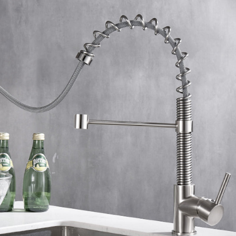 Your brushed nickel kitchen faucet features an industrial kitchen faucet open spout, compact 45cm height fits under most cabinets.