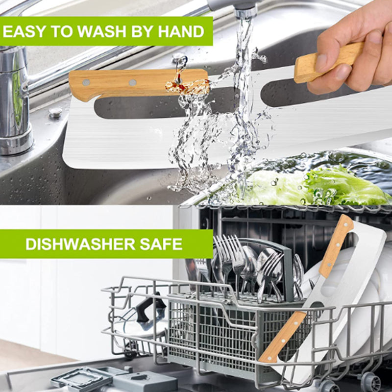 Features with plastic protective sheath for safer handling and easy storage. No need to disassemble the pizza cutters, just rinse this pizza knife under running water or place in the dishwasher for hands free cleaning. Easy to clean and dishwasher safe!