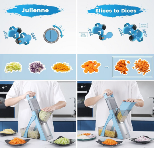 All blades in multifunction vegetable slicers and slicers are hidden. The anti-slip underneath vegetable slicers and choppers makes it stable in use. No physical contact with blades under any condition. It's an all-in-one vegetable chopper that...Regular price $29.99