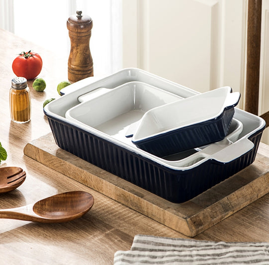 This set of baking dishes for oven features a classic white exterior that is elegantly simple, perfectly complementing various tableware. The dual-handle design and vertical patterns make it easier to grip. Ideal as a gift for...Regular price $68.99 -