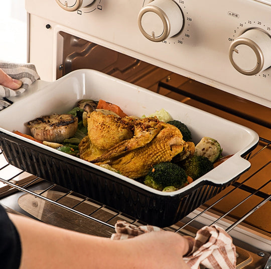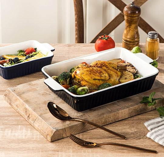 This set of baking dishes for oven features a classic black exterior that is elegantly simple, perfectly complementing various tableware. The dual-handle design and vertical patterns make it easier to grip. Ideal as a gift for...Regular price $68.99 -