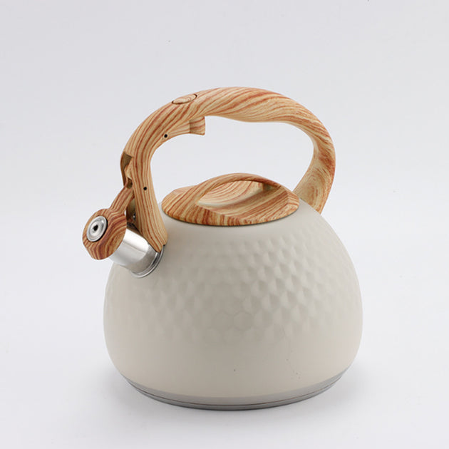 Whistling 304 Stainless Steel Diamond Pattern Tea Kettle with Wood Grain Handle