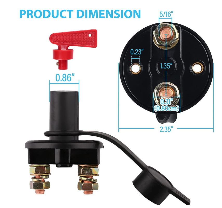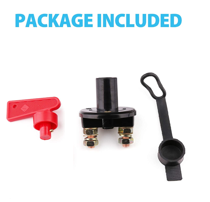 This battery master switch comes with 2 keys and a weather cover. The red keys can snug fit to curb battery drain and theft. The black cover can prevent from dust and water, prolong their lifespan