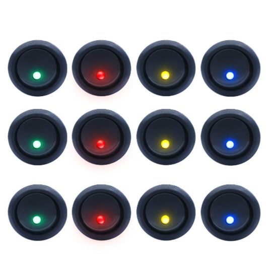12 pcs 12V Round Rocker Switch Lighted SPST Switch Blue LED Light up 20A 3